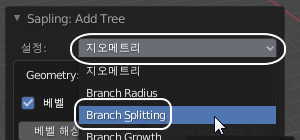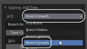 가지의 성장도는 설정의 Branch Growth 메뉴에서 설정할 수 있는데요.