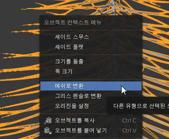 마우스 우클릭, 메쉬로 변환 메뉴를 선택해볼까요?