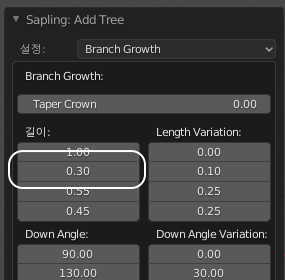 다음으로는 가지의 성장도를 변화시켜보겠습니다.
