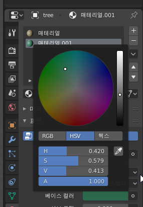 이제 나무색상과 나뭇잎의 색상을 각각 다르게 적용해볼텐데요.