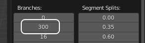 다음으로 2레벨의 가지 Branches 값을 75에서 300으로 정도로 조정합니다.