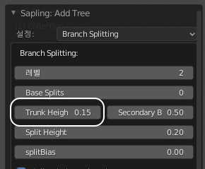 Trunk Height 값을 0.15 정도로 설정하면, 나무가지가 퍼져나가는 높이가 15% 높이 정도에서 시작됩니다.