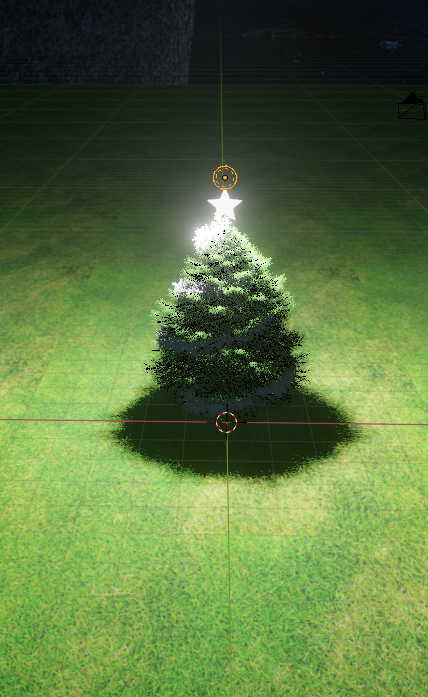 트리의 더 많은 부분을 비추려면 포인트 라이트 빛의 위치를 더 높이 올려주시면 됩니다.