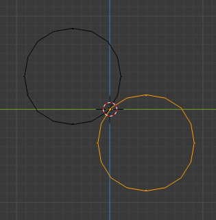 A 키를 눌러 모두 선택하신 다음 G 키를 눌러 이 즈음으로 이동해 주세요. 원의 끝점이 중간정도애 위치하도록 해주시면 됩니다.