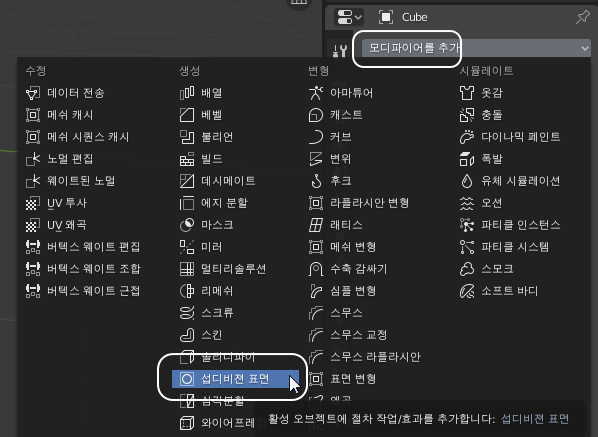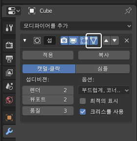 모디파이어를 추가, 섭디비전 표면을 선택해 주세요.