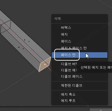 키보드 상단 3 키를 눌러 면 편집모드로 전환하고,