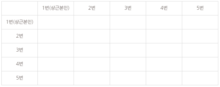 그리고 나서, 친구 관계 위치에 O 를 표시합니다. 가로 세로 모두 표시합니다.
