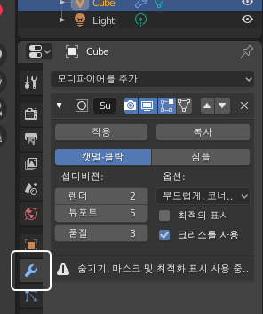 오른쪽의 모디파이어 아이콘을 클릭해보시면 확인해보실 수 있습니다.