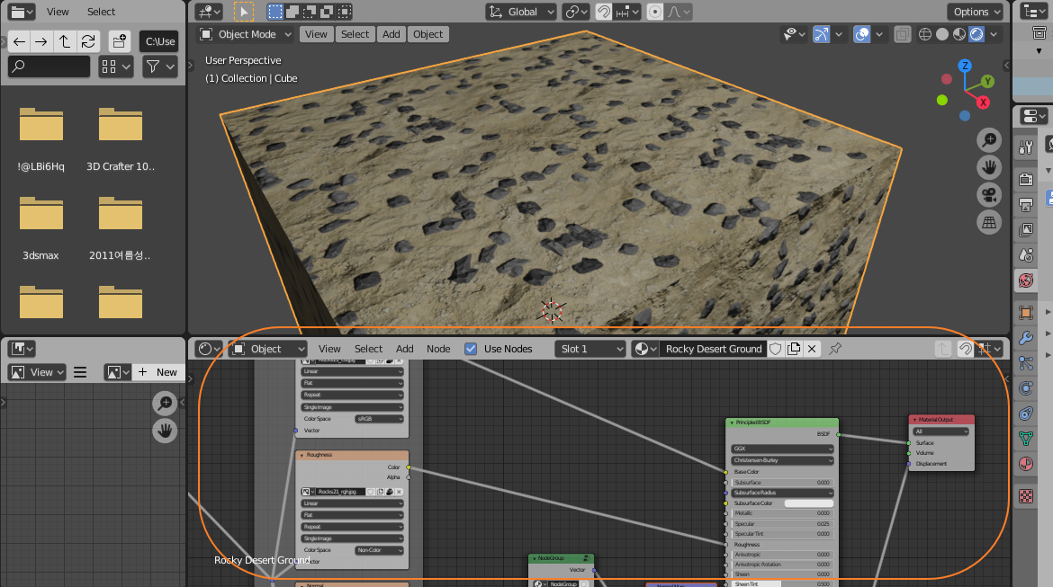 블렌더키트의 매트리얼은 모델과는 다르게 노드리스트에서 상세 편집이 가능합니다.