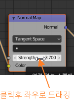 이제 Normal Map 항목의 Strength 치수값을 조정해볼까요?
