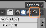 현재 선택된 오브젝트에 매트리얼, 즉 재질을 입혀주는 기능입니다.
