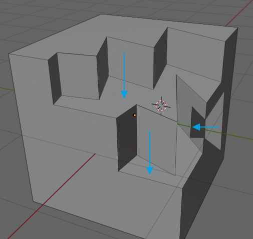 블렌더에서는 기본적으로 E 키를 통해서 밖으로 돌출하는 것은 별 문제 없지만,