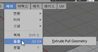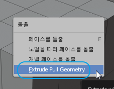 영어로 나오긴 했는데요. 메쉬 - 돌출 - Extrude Pull Geometry 메뉴에서 사용 가능하다고 안내가 되어 있습니다.