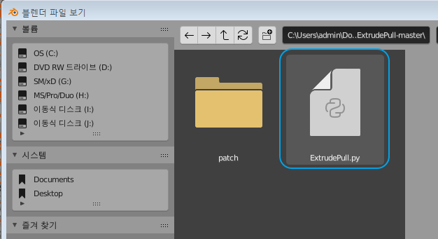 ExtrudePull.py 라는 파일이 보일텐데요. 파이선이라 불리는 스크립트 파일입니다.