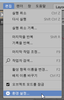 우선, 편집 - 환경설정 메뉴로 이동하셔서
