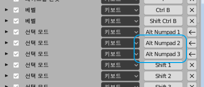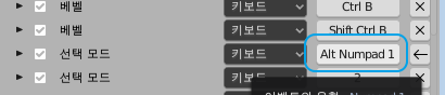 Alt + 1, 2, 3 과 같은 단축키는 블렌더에서 사용하고 있지 않은데,