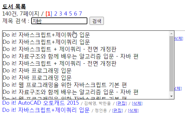 그러면 '자바'라는 단어가 들어간 책 제목이 주루룩 뜹니다.