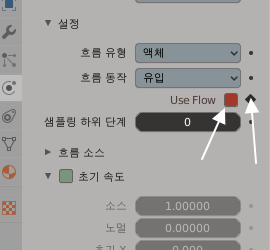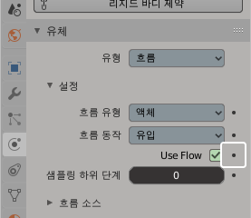 물리 속성창에 보시면 Use Flow ( 물흐름 사용 여부 ) 옵션이 보이실 겁니다.