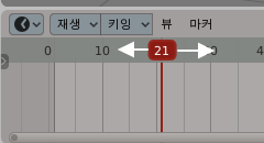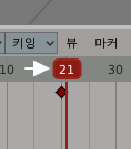그 다음에는 애니메이션 프레임의 빨간색 프레임 막대를 21프레임으로 옮겨주세요.