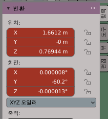 변환 창에서 이번에는 위치 뿐만 아니라 회전도 키프레임을 잡아주세요.