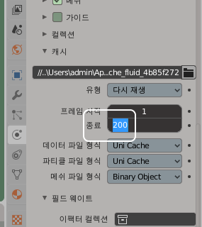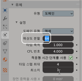 하지만 이 경우 물 시뮬레이션의 동작을 변경하기 위해서는 베이크를 다시 풀어주어야 해서 이 부분은 맨 마지막에 다루도록 하겠습니다.