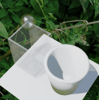 R 키를 눌러 컵을 기울입니다. 물이 많이 차 있다면 90도까지 기울이지 않아도 물이 흘러 내릴 것입니다.