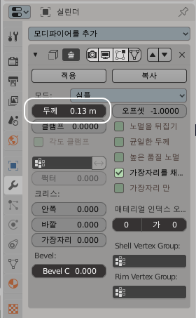 두께를 주기 위해, 모디파이어를 추가 - 솔리디파이를 선택해주세요.