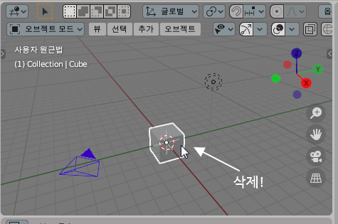 3D 뷰어에서는 금방 원뿔을 삭제합니다.