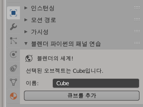 bl_label = "블렌더 파이썬의 패널 연습"