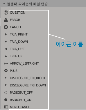 블렌더에서 사용할 수 있는 아이콘 목록은 아래 URL에서 확인하실 수 있습니다.