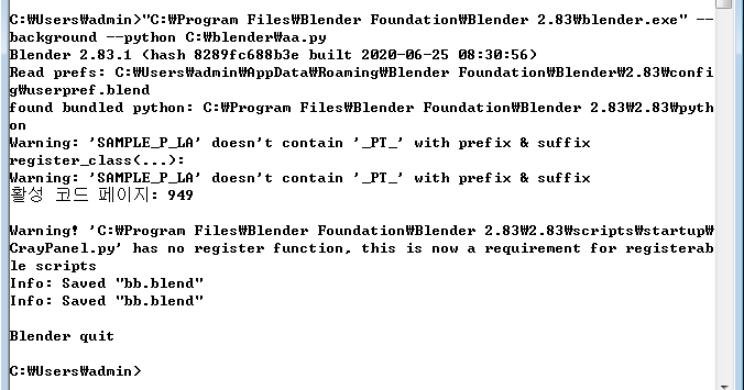그러면 뭐라고 마구 마구 나오다가 마지막에 blender quit 라고 뜰텐데요.