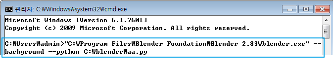 그리고 위에서 작성한 파이썬 소스 파일을 C:\blender 폴더에 aa.py 라는 파일명으로 보관해 주시기 바랍니다.