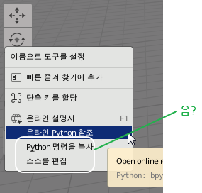 바로 이 기능인 블렌더 파이썬 개발자를 위한 기능이기 때문이지요.