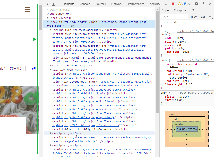 웹 브라우저에서 F12 키를 치면 개발도구가 등장합니다.