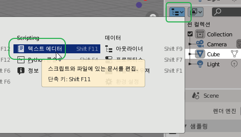 블렌더의 기본 기능 또한 소스편집 기능으로 접근할 수는 있는데요.