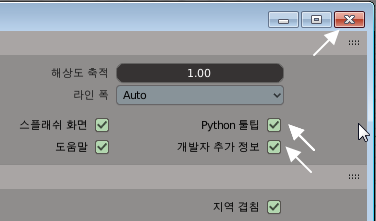 인터페이스 탭을 선택하시면, Python 툴팁과 개발자 추가정보란게 있는데요..