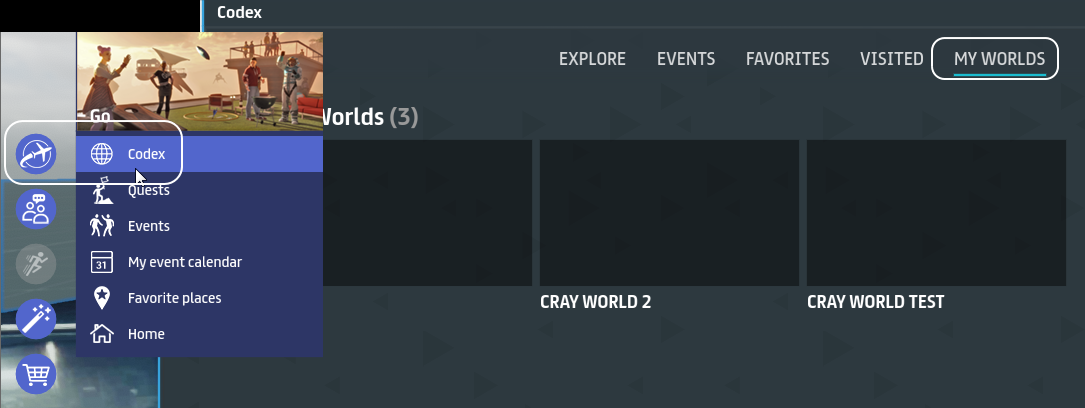 Go - Codex 에서 언제든지 MY WORLDS 에 접속하실 수 있습니다.