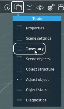 화면 상단의 Tools 아이콘을 선택 Inventory 버튼을 눌러 아이템을 찾아보실 수 있습니다.
