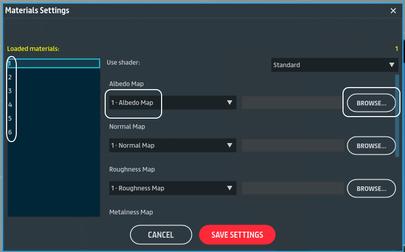 Albedo Map 에서 그림파일을 하나씩 각각 선택해주시면 됩니다