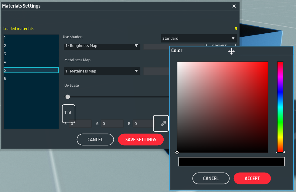 만일 특정면에 대해 사진이 아닌 단순색상을 채우고 싶으신 경우, 아랫쪽 부분에 Tint 라는데서 색상을 골라주시면 됩니다.