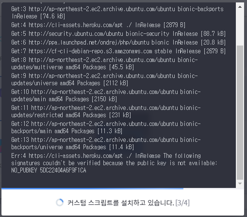 그러면 설치가 진행되면서 뭔가가 서버를 막 켠것처럼 쭉쭉 진행이 됩니다.