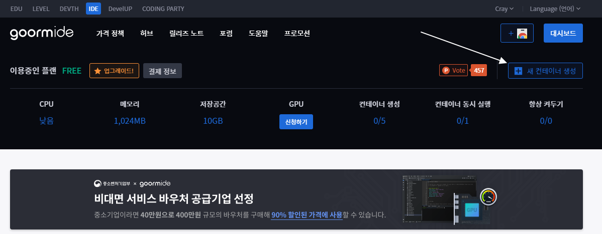 오늘은 구름 IDE 라는 곳에서 제공하는 클라우드 서비스를 소개합니다.