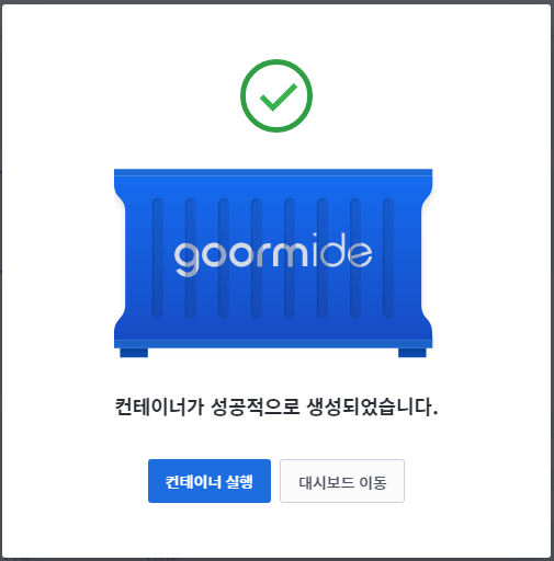 여기서 컨테이너 실행 버튼을 누르면 바로 실행이 되지만 다음번 들어갈 때는 이 화면이 뜨지 않으므로 첫 화면으로 이동해 봅시다. '대시보드 이동' 버튼을 클릭해 보세요