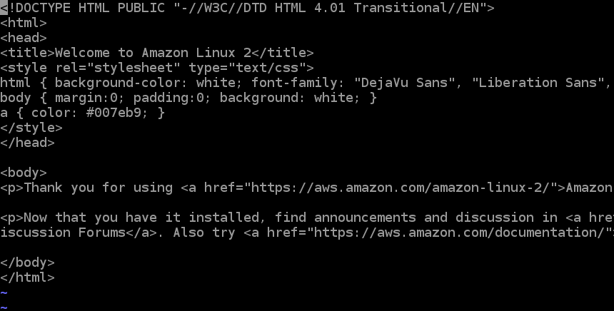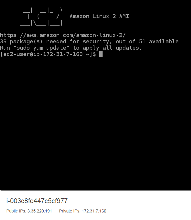 아마존 리눅스 2 서버의 SSH 터미널에 접속한 화면입니다.