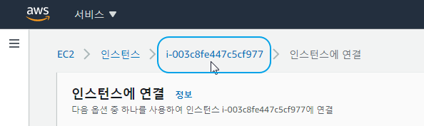 인스턴스 우측의 인스턴스 아이디값을 클릭합니다