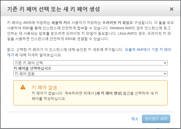 상단 선택 상자는 '새 키 페어 생성' 선택,