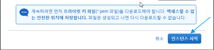 파일을 다운로드하면 인스턴스 시작 버튼이 활성화되는데 이 버튼을 눌러주시면 됩니다.