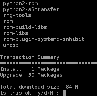 그러면 yum 목록이 주루룩 나열되다가 업데이트할지 여부를 물어봅니다. 당연히 y 를 입력하고 Enter 키를 누릅니다.