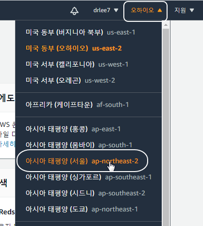 보통은 한국의 경우 왼쪽에 위치하는게 일반적인데, AWS는 오른쪽이라 처음에 영 익숙하지 않더라구요 :)