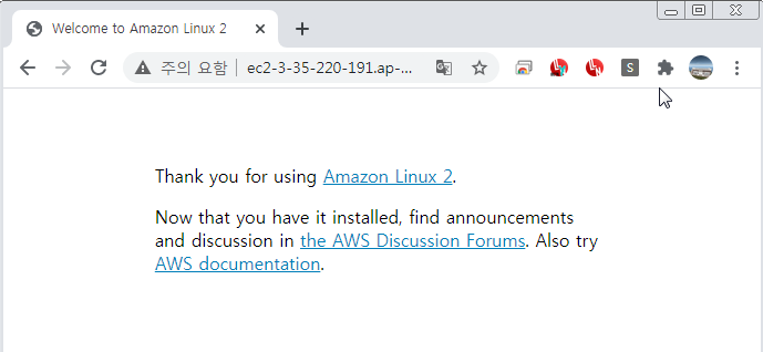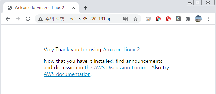 하지만 아직 이 인스턴스 가상서버는 '서버만 가상'으로 생성되었을 뿐 웹서버가 된 것은 아닙니다.